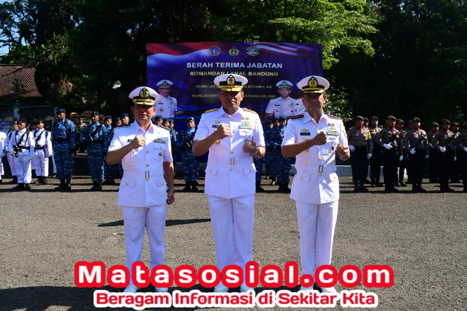 TNI AL, Bandung,- Tongkat kepemimpinan Komandan Pangkalan TNI Angkatan Laut (Danlanal) Bandung diserahterimakan oleh Komandan Komando Daerah Angkatan Laut III (Dankodaeral III) Laksamana Muda TNI Uki Prasetia, S.T., M.M., dari Kolonel Laut (P) Muhammad Taufik, M.Tr. Hanla., M.M., kepada Kolonel Laut (P) Erfan Indra Darmawan, M.Tr. Hanla., M.M., CIQaR., sekaligus Pengangkatan Ketua Cabang 9 Daerah Kodaeral III Gabungan Jalasenastri Koarmada RI Ny. Desma Erfan Indra oleh Ketua Daerah Kodaeral III Gabungan Jalasenastri Koarmada RI Ny. Hening Uki Prasetia, bertempat di Mess Pati R.E. Martadinata, Jalan dr. Setia Budi No. 73 Kota Bandung, Jum’at (12/09/2025).