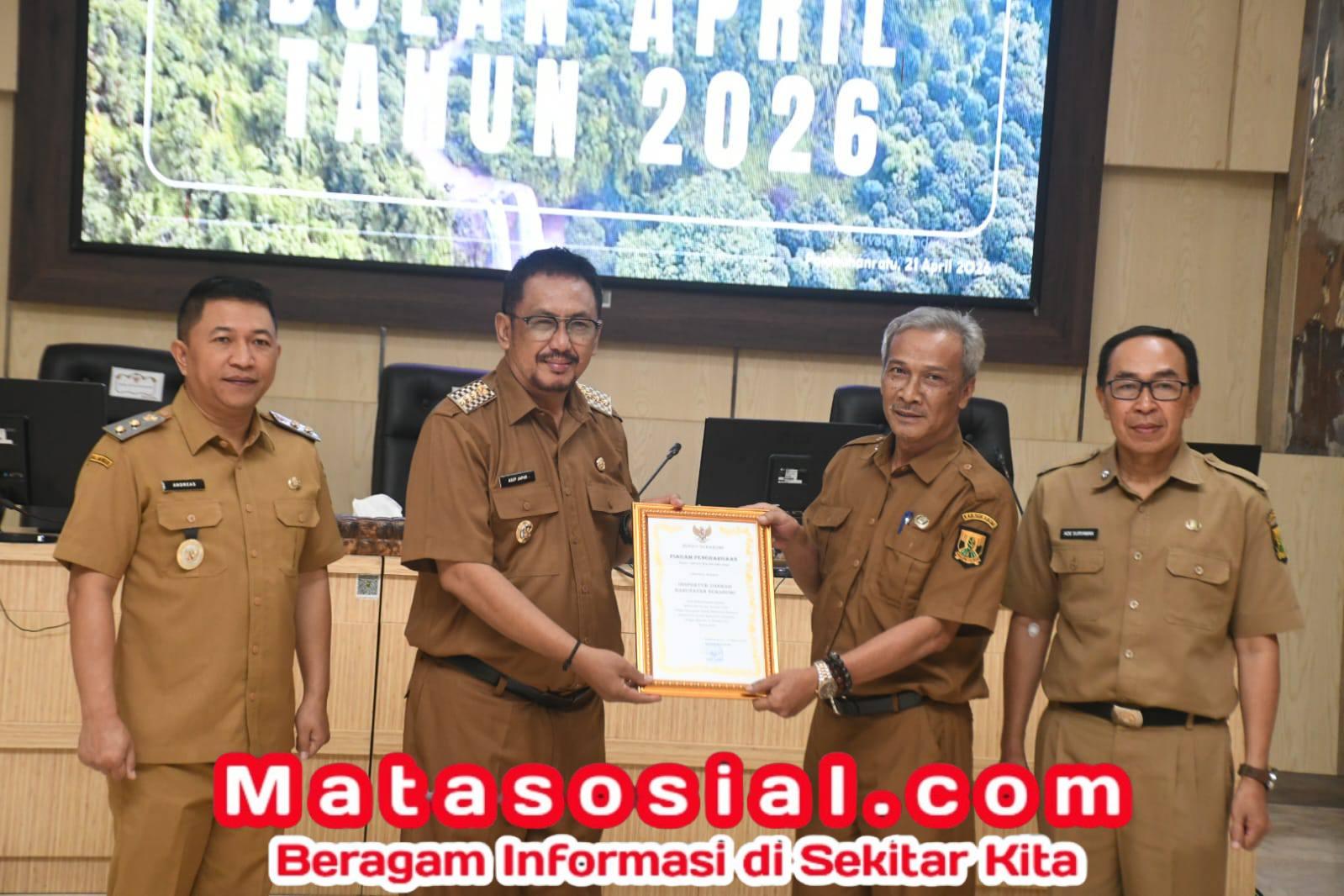 Sukabumi – Bupati Sukabumi H. Asep Japar memimpin Rapat Dinas Bulan April 2026 di Aula Sekretariat Daerah Kabupaten Sukabumi pada Selasa (21/4/2026). Rapat dipandu oleh Sekretaris Daerah H. Ade Suryaman dan dihadiri Wakil Bupati H. Andreas, kepala perangkat daerah, asisten daerah, staf ahli, kepala bagian, serta para camat se-Kabupaten Sukabumi. Dalam kesempatan tersebut, Bupati bersama Wakil Bupati menyerahkan penghargaan kepada sejumlah perangkat daerah atas kontribusi mereka dalam meningkatkan Indeks Reformasi Birokrasi, serta sertifikat akreditasi laboratorium milik Dinas Lingkungan Hidup sebagai bentuk peningkatan kualitas layanan publik.