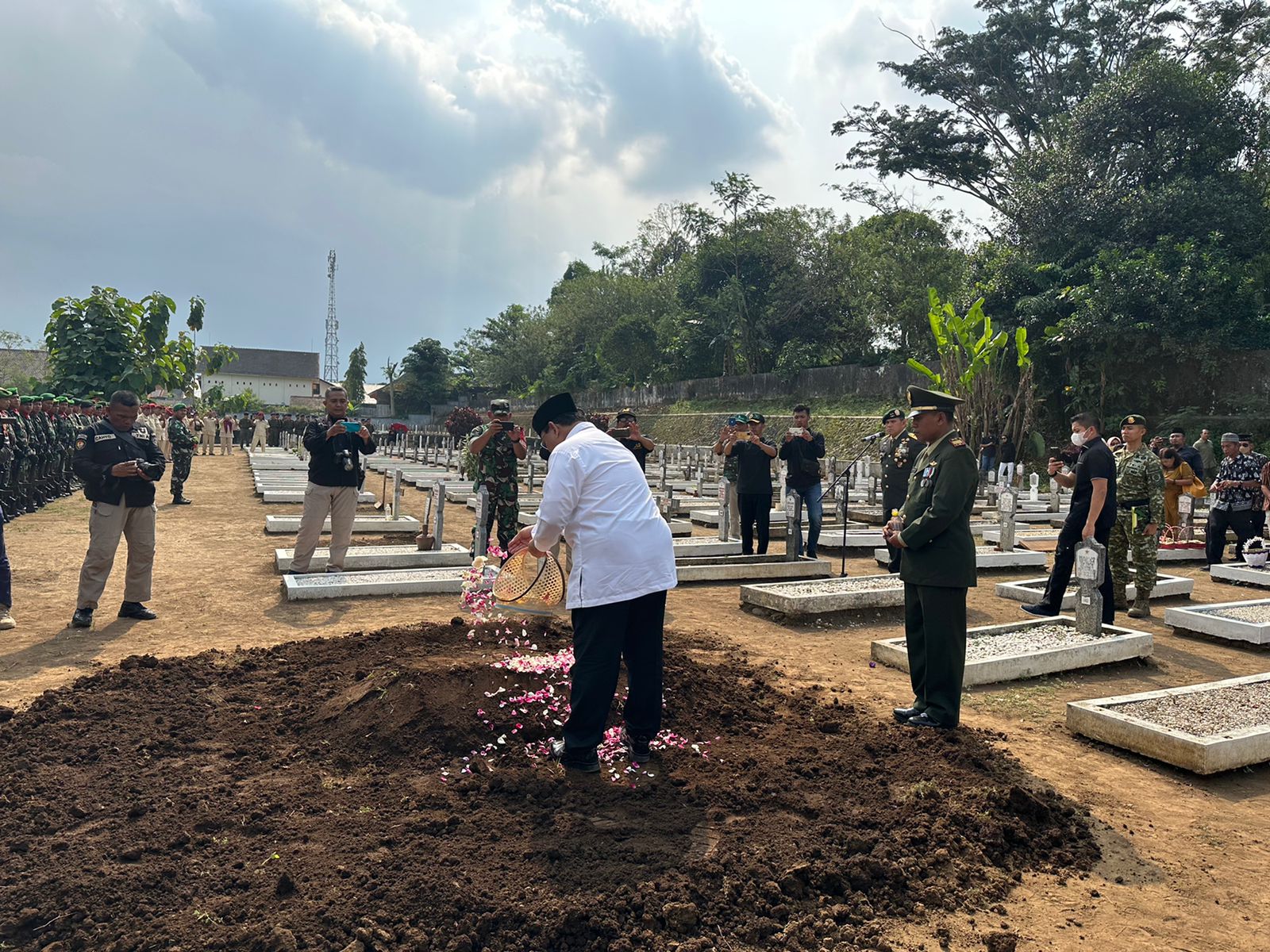 Upacara pemakaman militer dipimpin oleh Kaskostrad Mayjen TNI Syafrial selaku Inspektur Upacara.